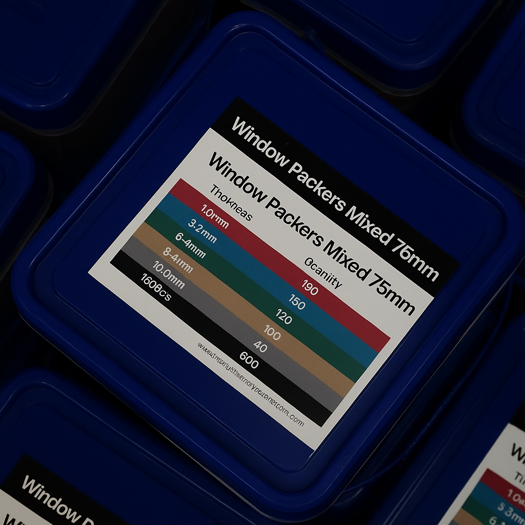 Buy AGrade 75mm Mixed Size Packers — the smart, durable choice for levelling, spacing and packing. Ideal for window & door installation, cabinet levelling, tiling, timber decking and general construction. Mixed pack contains 1mm, 1.5mm, 3.2mm, 5mm, 6.4mm and 10mm shims. UV-stable, high-strength and colour coded for quick selection on-site.